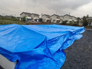 シート養生まで完了です。次回は、13日に足場架けを行います。(^^)/
