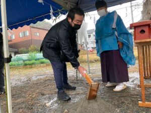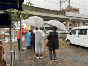 雨の中の地鎮祭無事終了!おめでとうございました。