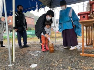 S様 今日は、地鎮祭おめでとうございます。着工が待ちどおしい感じですね