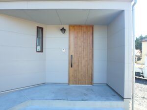 玄関ポーチは、土間コンクリート仕上げでシンプルにまとまりました(^^)/