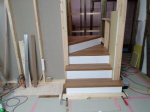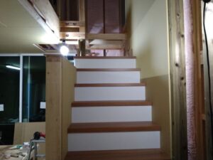 もう少しで階段完成ですね! 「カワマー棟梁」頑張っています(^^♪