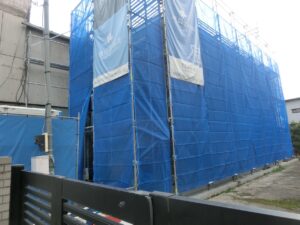 狭い足場の中 綺麗に外壁工事完了ですね(^^♪