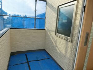 2階バルコニーは、別の色の外壁が貼られています。(設計どおりです)