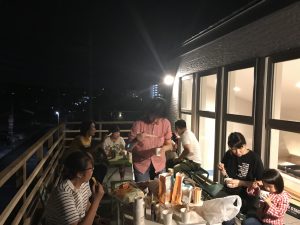 いつもこんな雰囲気でやっています。後10人くらいは、屋上へ上がれますますので