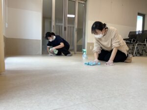 オフィスの会議室の床掃除「あっちゃん」「久美チョー」ご苦労様です!