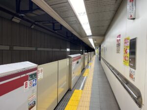 国立競技場駅(地下鉄)から新宿に戻るホームは、ガラガラ