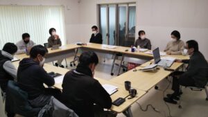 プロジェクターで㊙映像も写しています。よく見てる人、いつものことと・・見てない人に分かれますね!(*_*;(グジグジ社長がばれてる)
