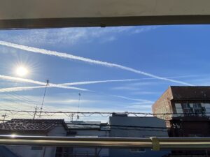 今日は、本社から南の空をみますと3本の飛行機雲が・・
