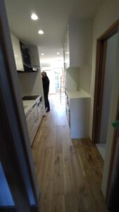 こちらは、万町のK様邸です。床の養生板も取れて室内は、クリーニング工事で完了まできました。