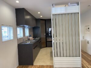 対面にせずキッチンで家事をしながら窓をみると子供の帰りがわかるという設計だそうです。