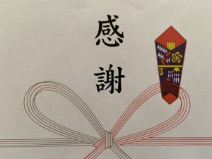 最後のお土産を頂きました。弊社の経営理念の一部「感謝」の熨斗が貼ってありました。