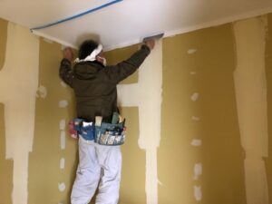 頑固職人「スーシー」頑張っていますね~漆喰クロスなので技術が必要ですので