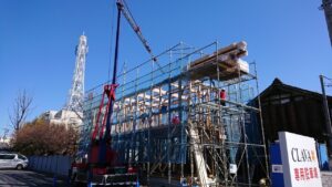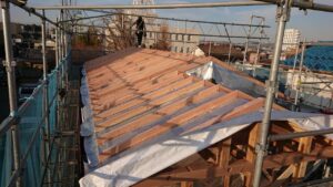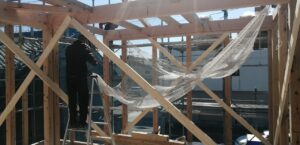 2階「さかな君」棟梁担当で工事を行います。 今回は、2人の大工さんが各階を責任をもって工事を