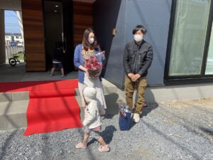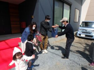 引っ越しの日程がギリギリで引渡し式が遅れてしまいましたが、良いお天気の中行う事ができました。