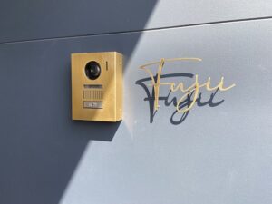 玄関のインターフォン、表札は、ゴールドでなかなかいいですね(^^♪