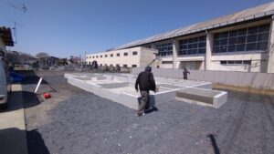 「ふじまー」監督得意のレベルを見ています(基礎の水平をチェツク)