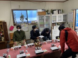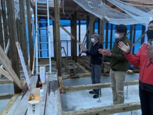 作業場にお弁当を準備して頂き、スタッフ、担当大工「さかな君」棟梁も