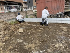 改良工事を行います「勝実建設:山野氏」と、「正也ん」でGLの確認をしているとこです。