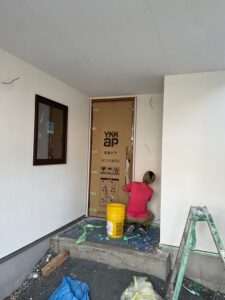 こちらは、金屋下町のH様邸です。外壁の塗の作業が
