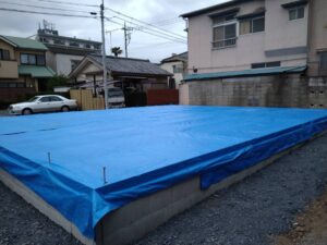 昨日の朝日町のE様邸の土台敷完了の写真です。