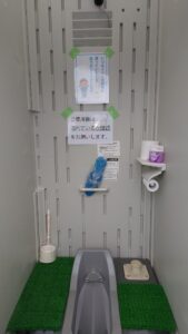 仮設トイレも 常に綺麗にすることで、お客様との現場打合せでも
