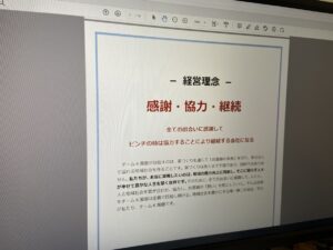 経営理念も「感謝・協力・継続」ですがその内容を見える化できる文章でまとめる事が