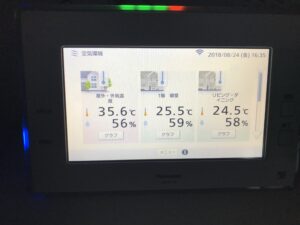 外気温35.6℃ 1階寝室25.5℃ 2階リビング24.5℃ かなり快適でした。