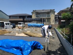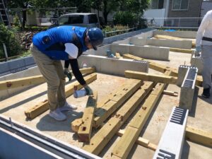 2日、行われました。植下町のY様邸土台敷きです。