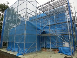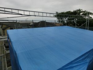 壁の養生まで無事終わりました(^^♪ 明日は、野地を始めます。