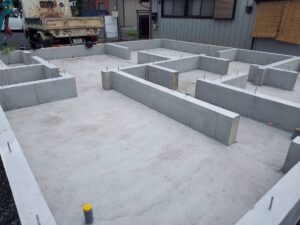 こちらは、大祝町のS様邸です。 基礎工事が完了しました。順調に進み一安心です。(^^♪
