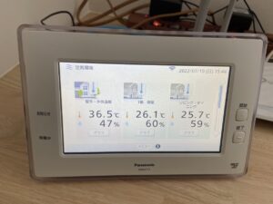 今日の16時頃の温度は、外気温36.5℃、1階26.1℃、2階25.7℃