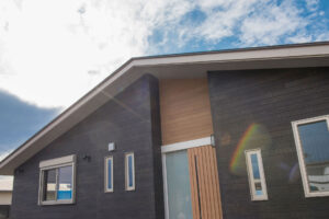 自然豊かな景観に映える、ゆったりとした平屋建ての家。